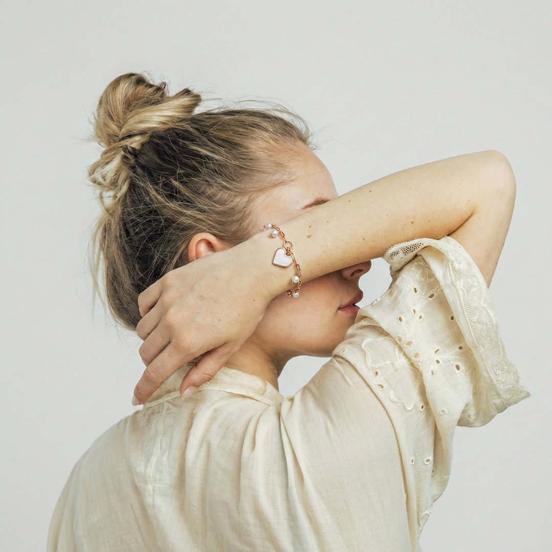 Bracelet with Heart shaped Charm and Pearl drops