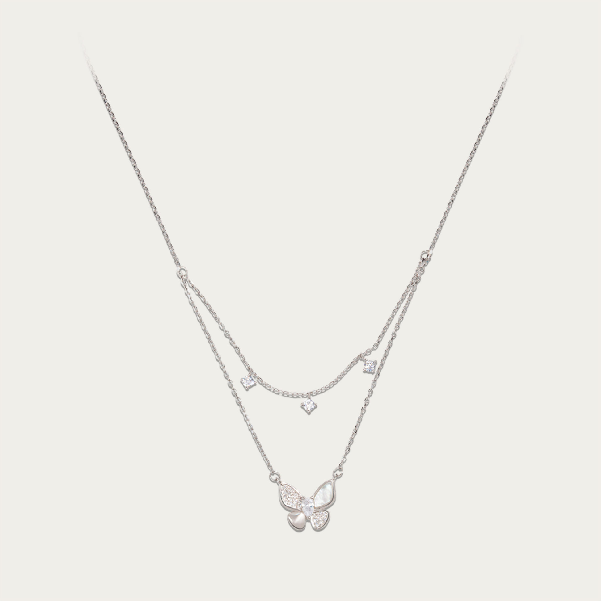 Blisse Allure Sterling Silver Butterfly Motif Layered Necklace