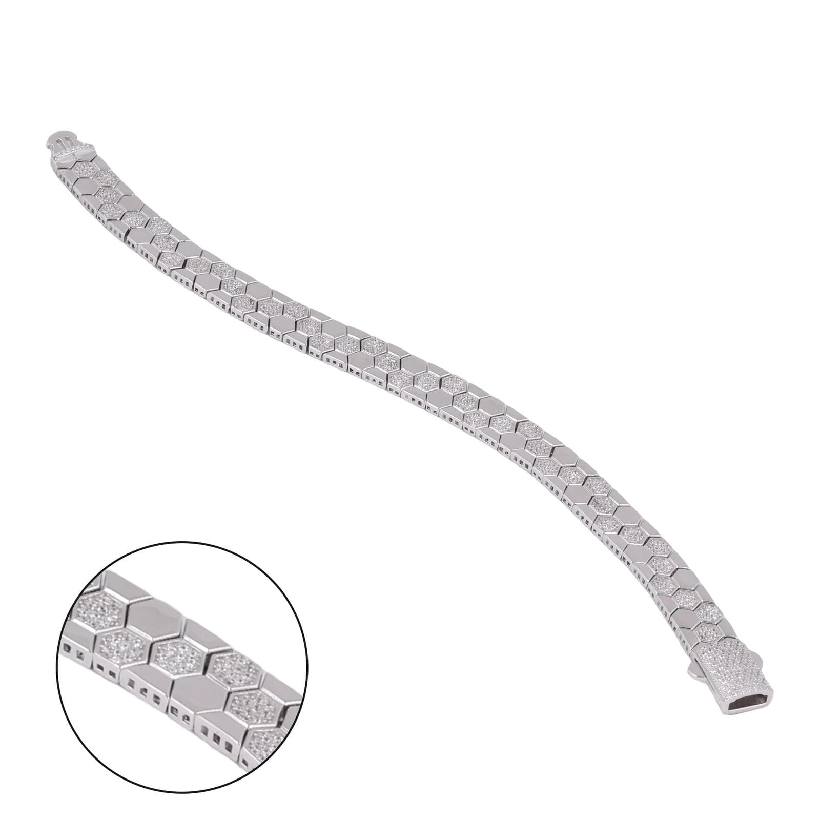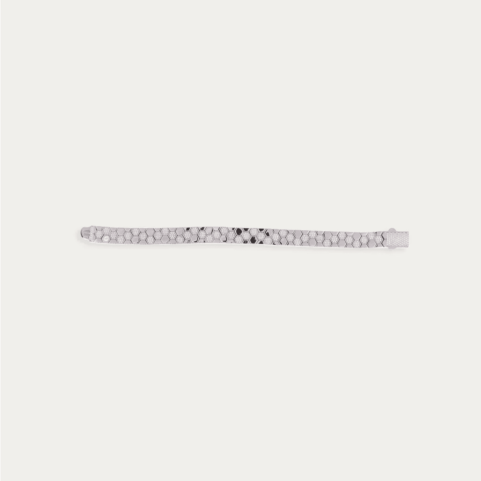 Add a touch of refined style with the Blissé Allure 925 Sterling Silver Hexagon-Link Bracelet. Designed with a modern hexagon pattern, each link shines beautifully with sparkling CZ stones that catch the light from every angle. The bracelet is finished with a smooth rhodium polish for lasting shine and comfort. Its box clasp with safety locks keeps it secure while blending perfectly into the design. Stylish, versatile, and timeless — perfect for both men and women who love elegant silver jewellery.