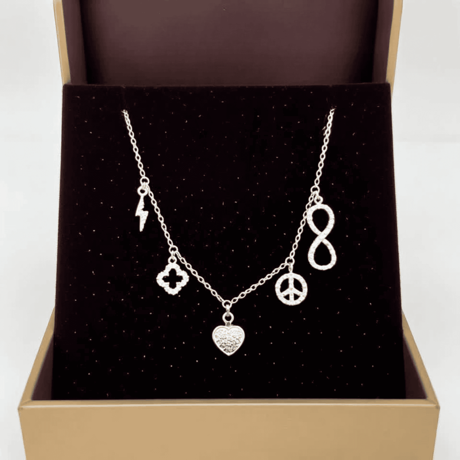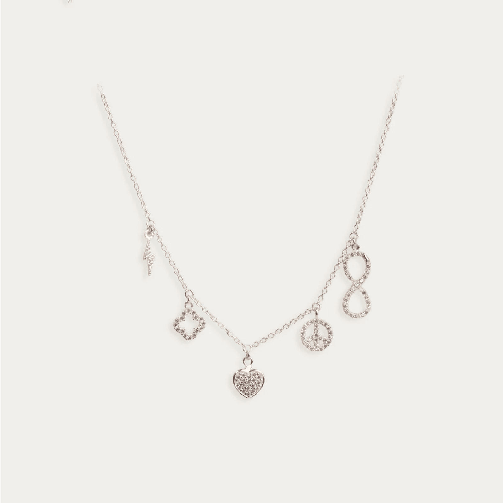 Bold and beautiful - aptly describes the necklace embellished in cubic zirconia stone, crafted in 925 silver. Feel glamorous in this beautiful silver charms necklace. 1. Stone - Cubic zirconia 2.Colour - Silver and White 3. Closure - Spring Clasp closure 4. Size - L- 406.4 mm, W- 20 mm, D- 2 mm 5. Silver Purity - 92.5 Every effort has been made to accurately reproduce the look of this product but there might be slight variations in the colour and size of the actual product received due to on-screen representation. This jewel consists of Sterling Silver composition and comes with a '925' sterling silver stamp as a symbol of guaranteed product quality. All metals used are lead free, nickel free, and hypoallergenic. Non-allergic for your skin, Blisse Allure Jewellery is coated in a special anti-tarnish polish that preserves its lustre and shine for long.