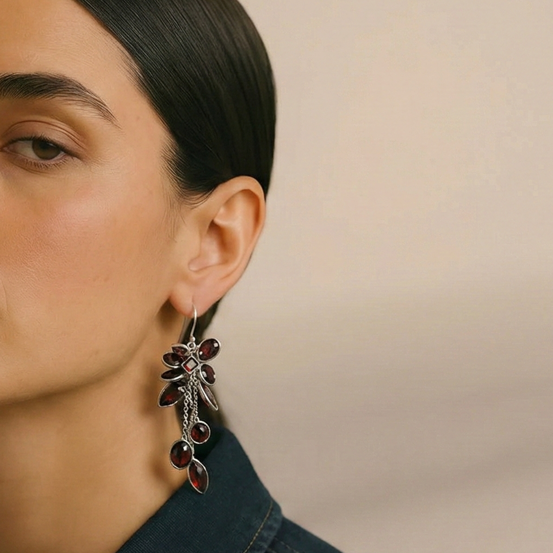 Gorgeous sterling silver danglers with red garnet drops