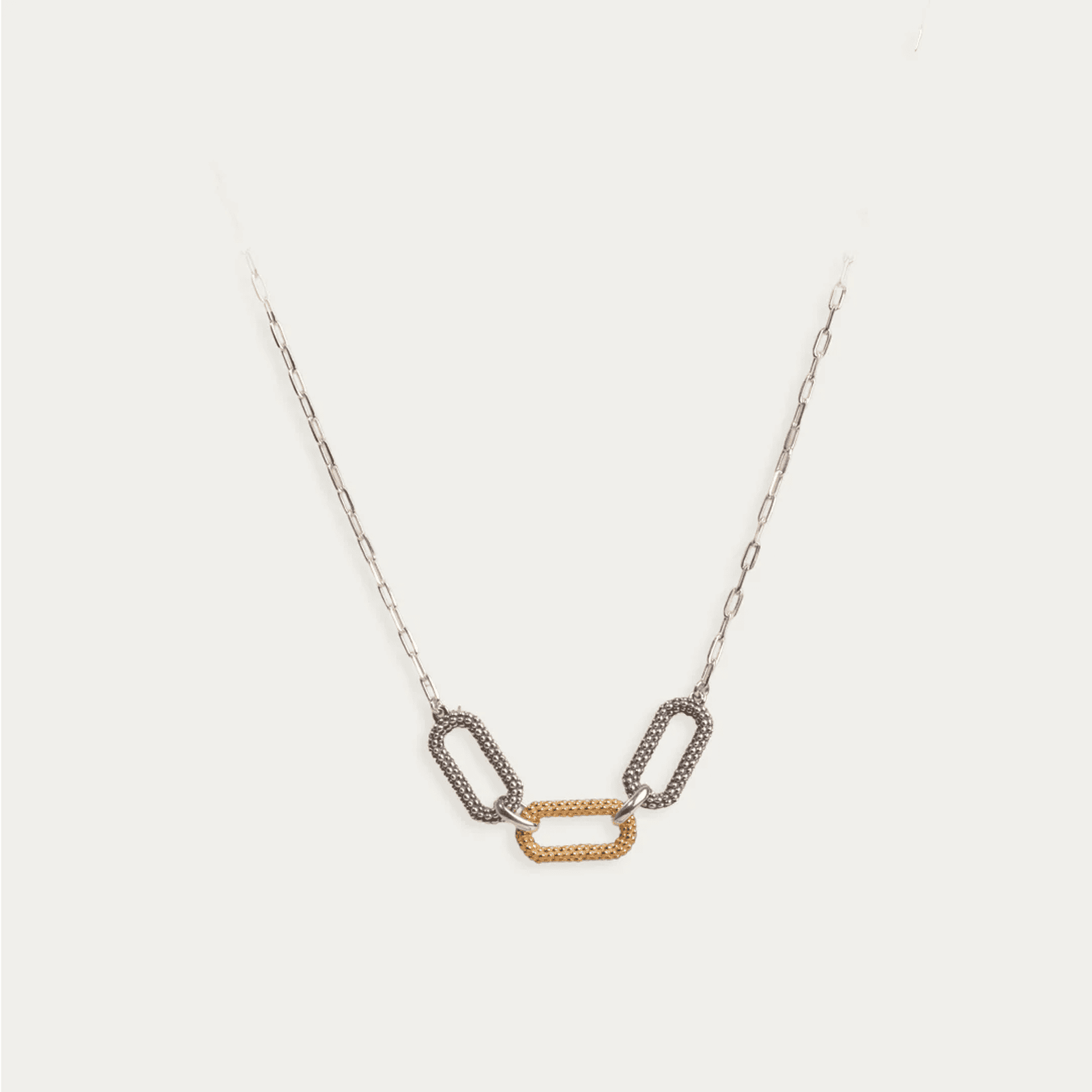 Introducing our three toned classic and breathtakingly gorgeous linked necklace with Oxidised silver and Gold links, perfect for any occasion -whether a lunch date, an office meeting or casually at home. This sterling silver necklace will be an adorable addition to your existing jewellery collection. Simply stunning, remarkable and affordable Infinity Necklace will make you look chic and trendy with any outfit you wear. This jewel consists of Sterling Silver composition and comes with a '925' sterling silver stamp as a symbol of guaranteed product quality. 1. Stone - Cubic zirconia 2.Colour - Black, Silver and Gold 3. Closure - Spring Clasp closure 4. Size - L- 406.4 mm, W- 20 mm, D- 2 mm 5. Silver Purity - 92.5 Every effort has been made to accurately reproduce the look of this product but there might be slight variations in the colour and size of the actual product received due to on-screen representation. This jewel consists of Sterling Silver composition and comes with a '925' sterling silver stamp as a symbol of guaranteed product quality. All metals used are lead free, nickel free, and hypoallergenic. Non-allergic for your skin, Blisse Allure Jewellery is coated in a special anti-tarnish polish that preserves its lustre and shine for long.